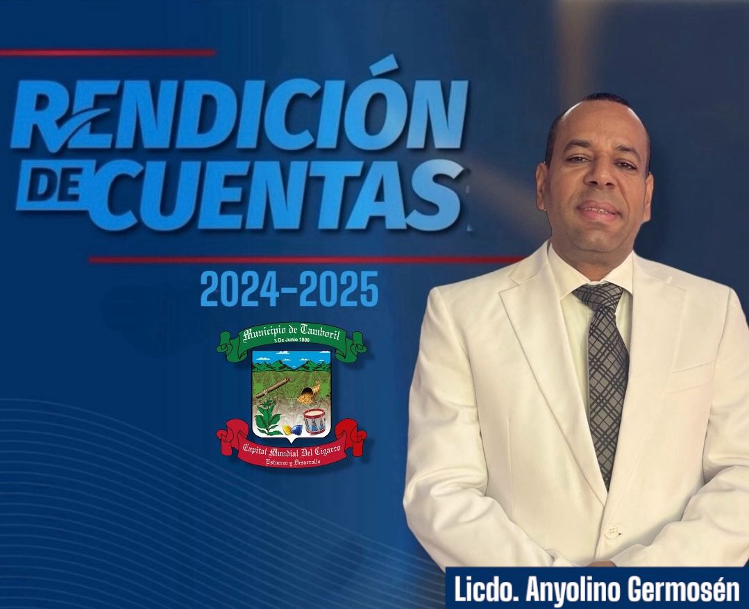 El alcalde Licdo. Anyolino Germos茅n present贸 su rendici贸n de cuentas correspondiente al a帽o de gesti贸n 2024-2025, destacando importantes avances en 谩reas clave del municipio y reafirmando su compromiso con el desarrollo sostenible y la participaci贸n ciudadana. En su intervenci贸n, resalt贸 obras de infraestructura, programas sociales y el impulso a proyectos comunitarios que han beneficiado directamente a miles de tamborile帽os.