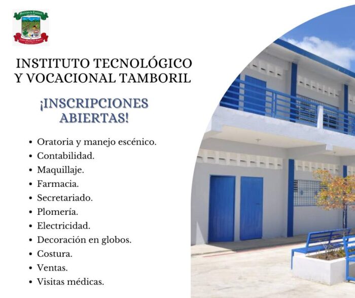 La visión del alcalde Anyolino Germosén, en conjunto con INFOTEP, es brindar la oportunidad de preparación a todos los tamborileños sin importar la edad, trayendo esperanzas al municipio. Por eso, en el Instituto Tecnológico y Vocacional Tamboril, contamos con una amplia variedad de cursos para satisfacer los diferentes intereses de nuestros munícipes. Les invitamos a prepararse en el área de su preferencia, porque la educación no tiene límites.