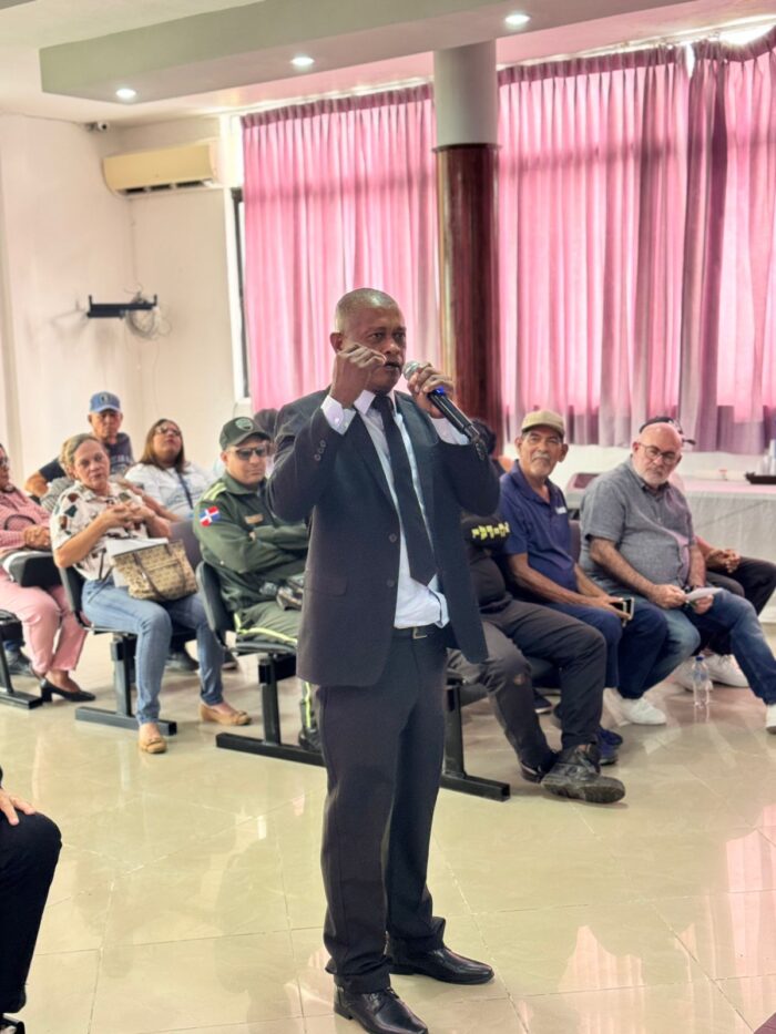 Casimiro dio la bienvenida a los presentes, destacando la importancia de estos encuentros para el fortalecimiento de las comunidades. Acto seguido, la Ing. Jáquez tomó la palabra y entregó un paquete de silbatos para la Policía Municipal, recibidos por el coronel Gerardo Rosario.