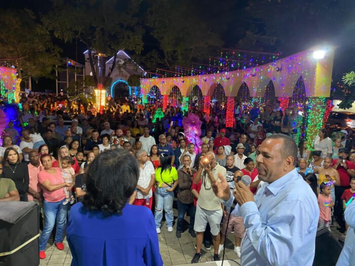 Cuando el reloj marcaba las ocho de la noche del sábado 2 de diciembre de 2023, el alcalde Anyolino Germosén junto a las diferentes autoridades municipales, dejó encendido, el parque Trina de Moya, con todo el colorido de la navidad.