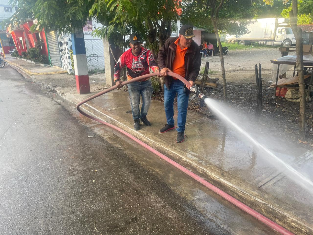 En el día de hoy, por disposición del Alcalde Lic. Anyolino Germosén y el Intendente de los bomberos, Juan Pablo Muñoz, procedieron, junto a una brigada de los bomberos, a la limpieza de aceras y contenes que construyó la alcaldía de Tamboril en la calle Real (Luis Abinader).