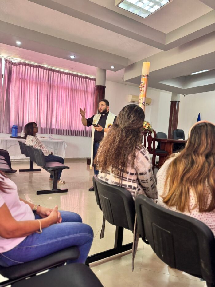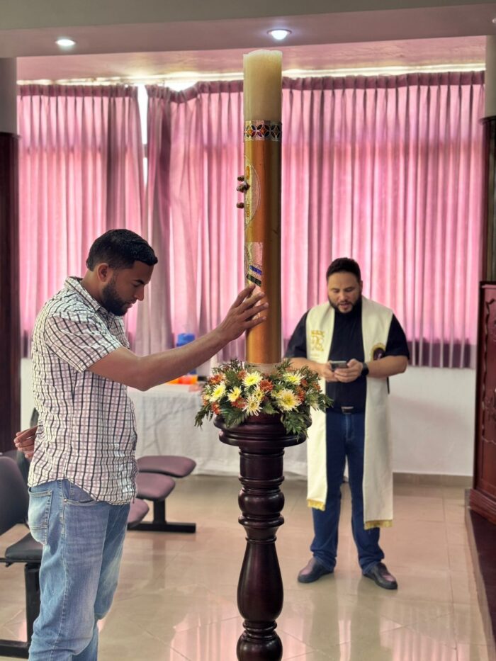 Hoy recibimos con gratitud y alegría al padre Javier Báez, quien nos honra con la llegada del Cirio Pascual, símbolo de esperanza, fe y renovación.