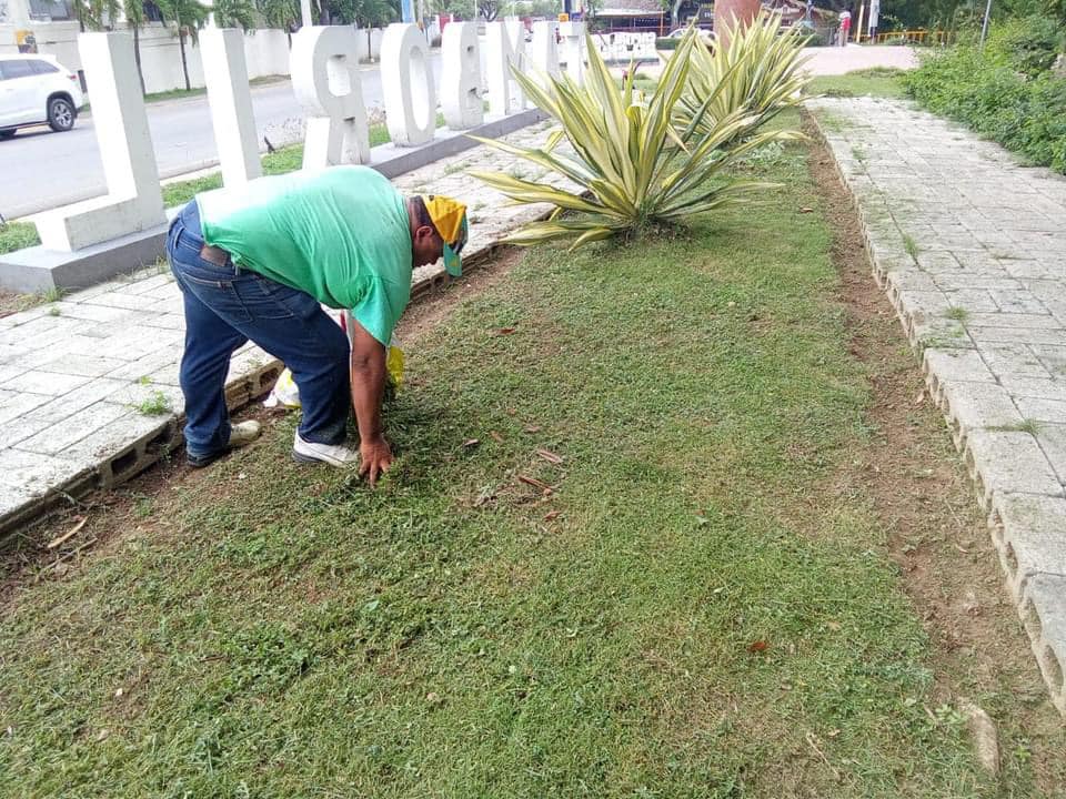 Por disposición del alcalde Anyolino Germosén, la brigada de ornato y limpieza, dirigida por Pedro Pérez, trabajó ayer desde temprano en el mantenimiento del monumento del cigarro, en honor a los tabaqueros y tabaqueras de nuestro municipio.
